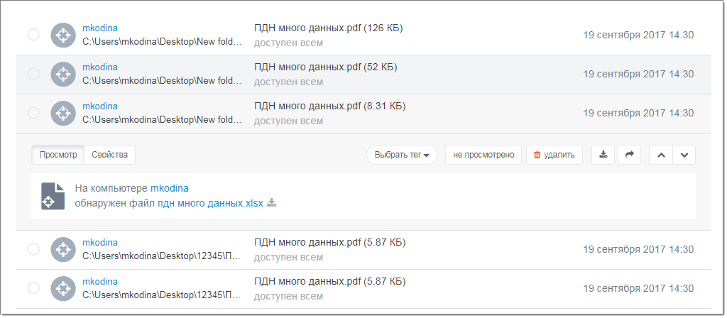 - Оповещение сотрудника о том, что на его компьютере располагается критичная информация.