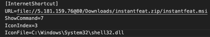 Когда жертва нажимает на ссылку, её перенаправляют на скомпрометированный сервер, где хранится файл-ярлык. Последний ссылается на другой аналогичный файл на подконтрольном злоумышленникам WebDAV-сервере.
