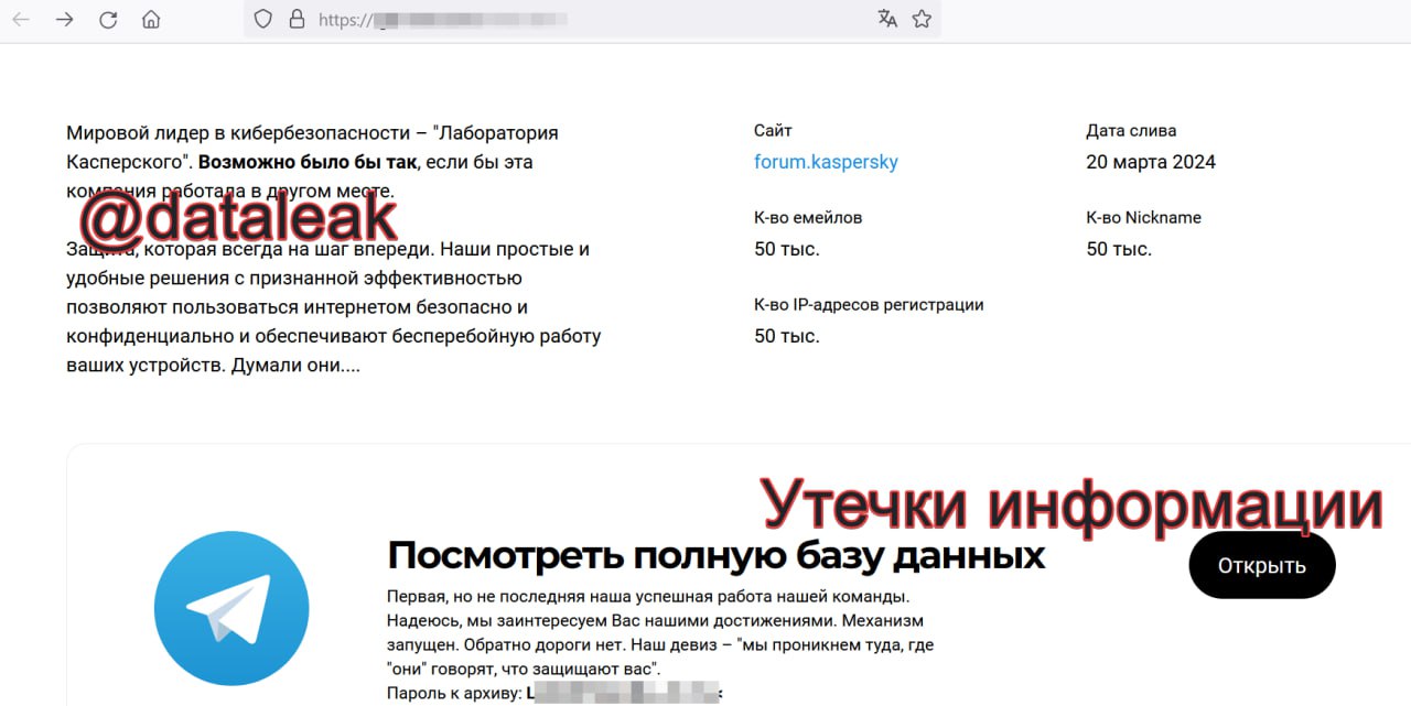Вчера вечером появилась информация от одной из киберпреступных группировок о сливе списка зарегистрированных пользователей форума «Лаборатории Касперского» (forum.kaspersky[.]com). Позже аналитики DLBI выяснили, что речь идёт о площадке клуба Kaspersky — forum.kasperskyclub[.]ru.