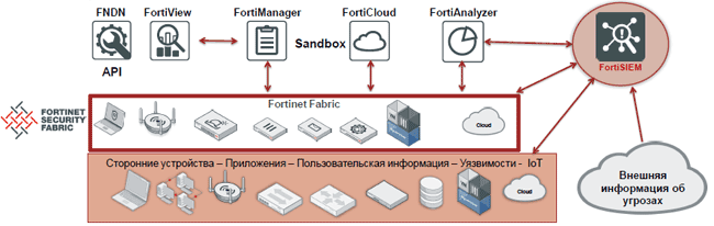 Рисунок 1. FortiSIEM в концепции Fortinet Security Fabric