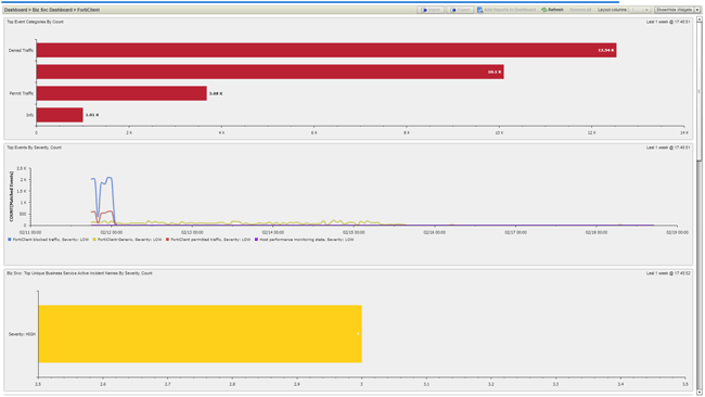 Для удобства администратор может настроить панель мониторинга производительности того или иного устройства или сервиса. Контролируемое состояние отслеживается, коррелируется, и могут выдаваться соответствующие инциденты в зависимости от заданных в FortiSIEM настроек.