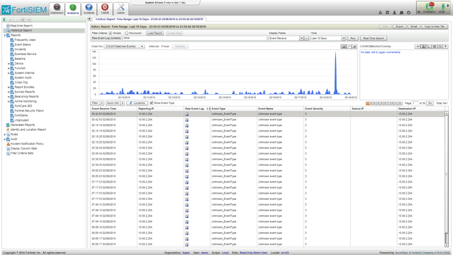 Рисунок 11. Отчет о событиях, наступивших на контролируемом устройстве, в интерфейсе администратора FortiSIEM