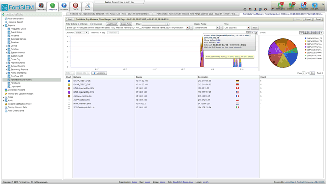В последние годы спрос на технологию SIEM высок. Компания Fortinet представляет на рынке SIEM единую систему сбора и анализа событий информационной безопасности FortiSIEM. Продукт предоставляет заказчику полнофункциональные панели мониторинга, гибкий механизм сбора журналов, управление функциями анализа угроз, контроль за состоянием корпоративной сети предприятия, в том числе за распределенной. FortiSIEM осуществляет взаимодействие с сетевыми устройствами, устройствами безопасности различных производителей, облачной и виртуальной инфраструктуры, серверами и рабочими станциями.