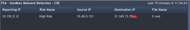 Рисунок 19. Оповещение панели мониторинга FortiSIEM об обнаруженном вредоносном файле
