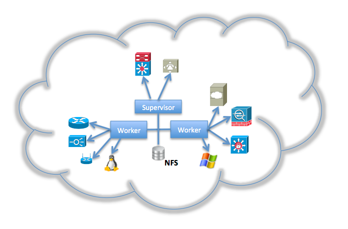 По мере увеличения количества контролируемых устройств или темпа роста событий один супервизор может не справиться с нагрузкой. В этом случае разворачивается один обработчик или кластер обработчиков, которые обмениваются данными с супервизором через общую базу данных (NFS). Обработчики являются stateless-узлами (не сохраняют информацию о предыдущих взаимодействиях, каждый запрос на взаимодействие обрабатывается исключительно на основе информации, приходящей с ним) и могут быть легко добавлены или удалены из кластера по мере необходимости.