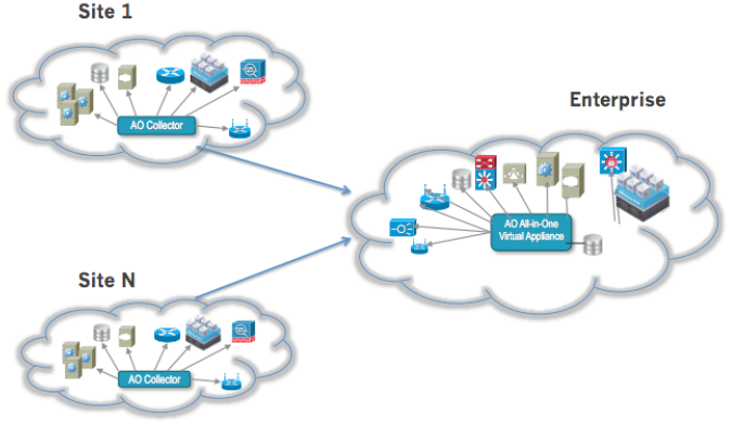 Рисунок 6. Сценарий внедрения FortiSIEM с использованием коллекторов — распределенное внедрение